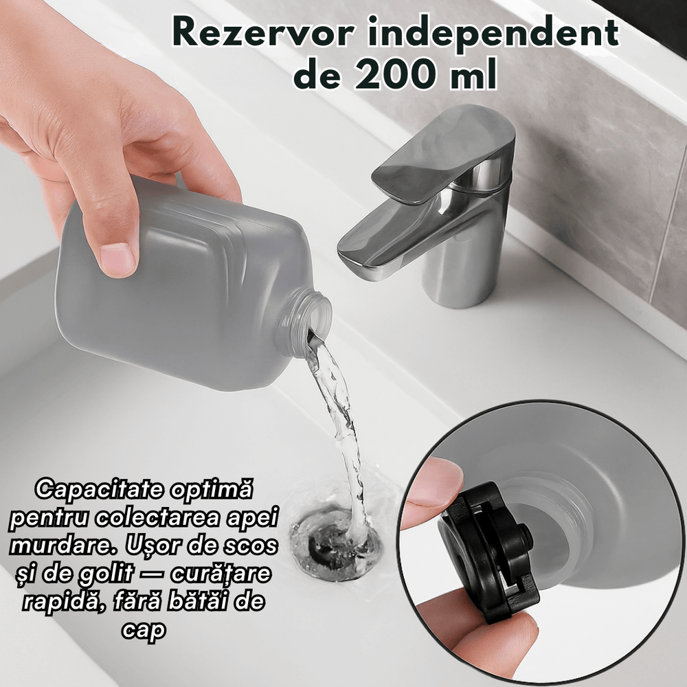 Rezervor 200 ml – mai multă capacitate pentru apă murdară.