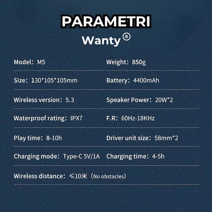 Bucura-te de o calitate audio superioara cu boxa noastra portabila Bluetooth de 40W (putere maxima). Echipata cu cipuri avansate de semnal digital si drivere stereo cu diafragma duala, aceasta ofera tonuri inalte clare, bass profund si un midrange echilibrat pentru o experienta auditiva captivanta.